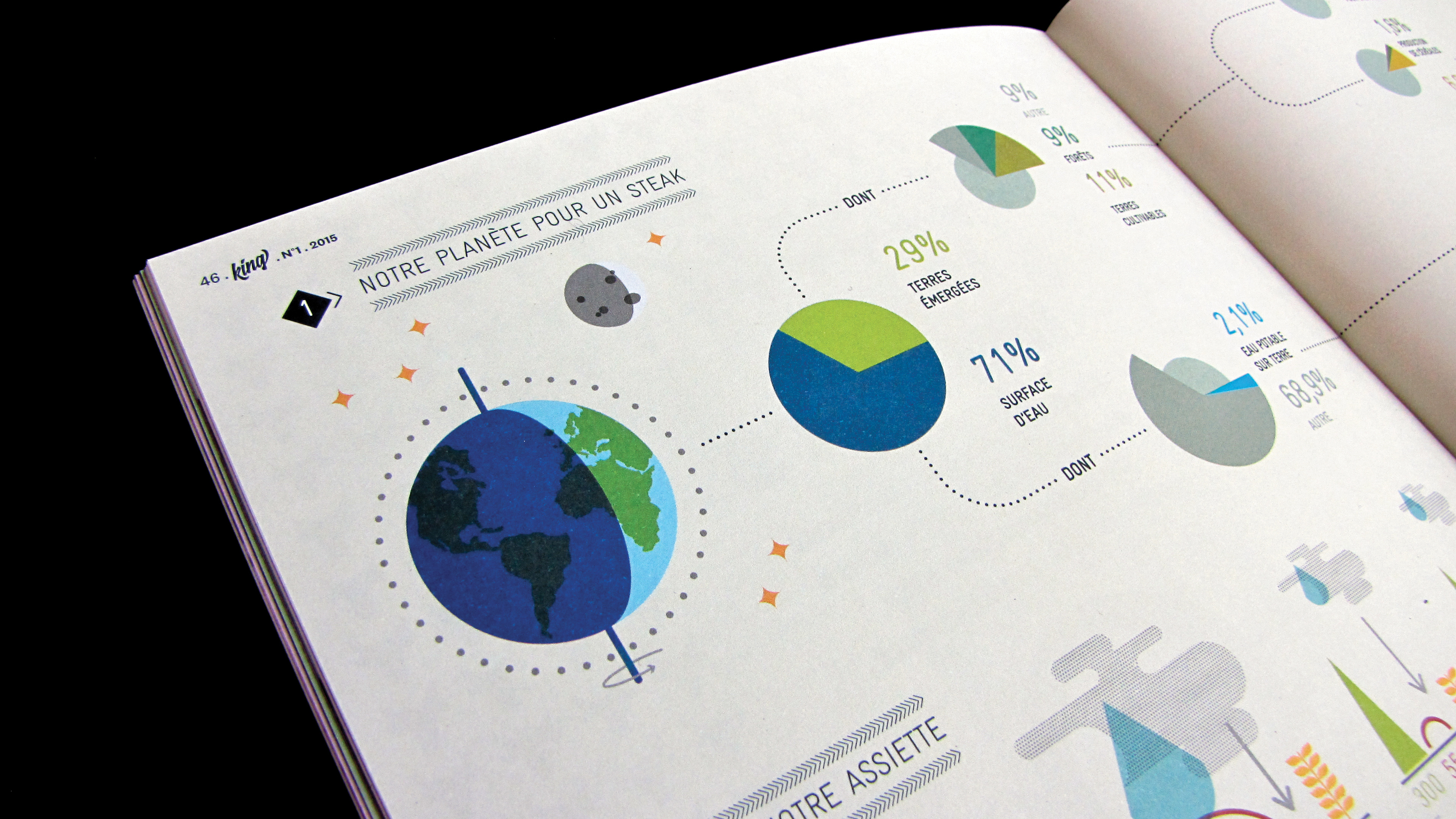 Publication in the educational magazine “King, le magazine qui se déguste”, published by the Nancy Aquarium Museum and Greater Nancy, in parallel with the “Those animals we eat” exhibition. Our graphic and educational contribution focuses on two double-page spreads of data - visualizations and illustrations.