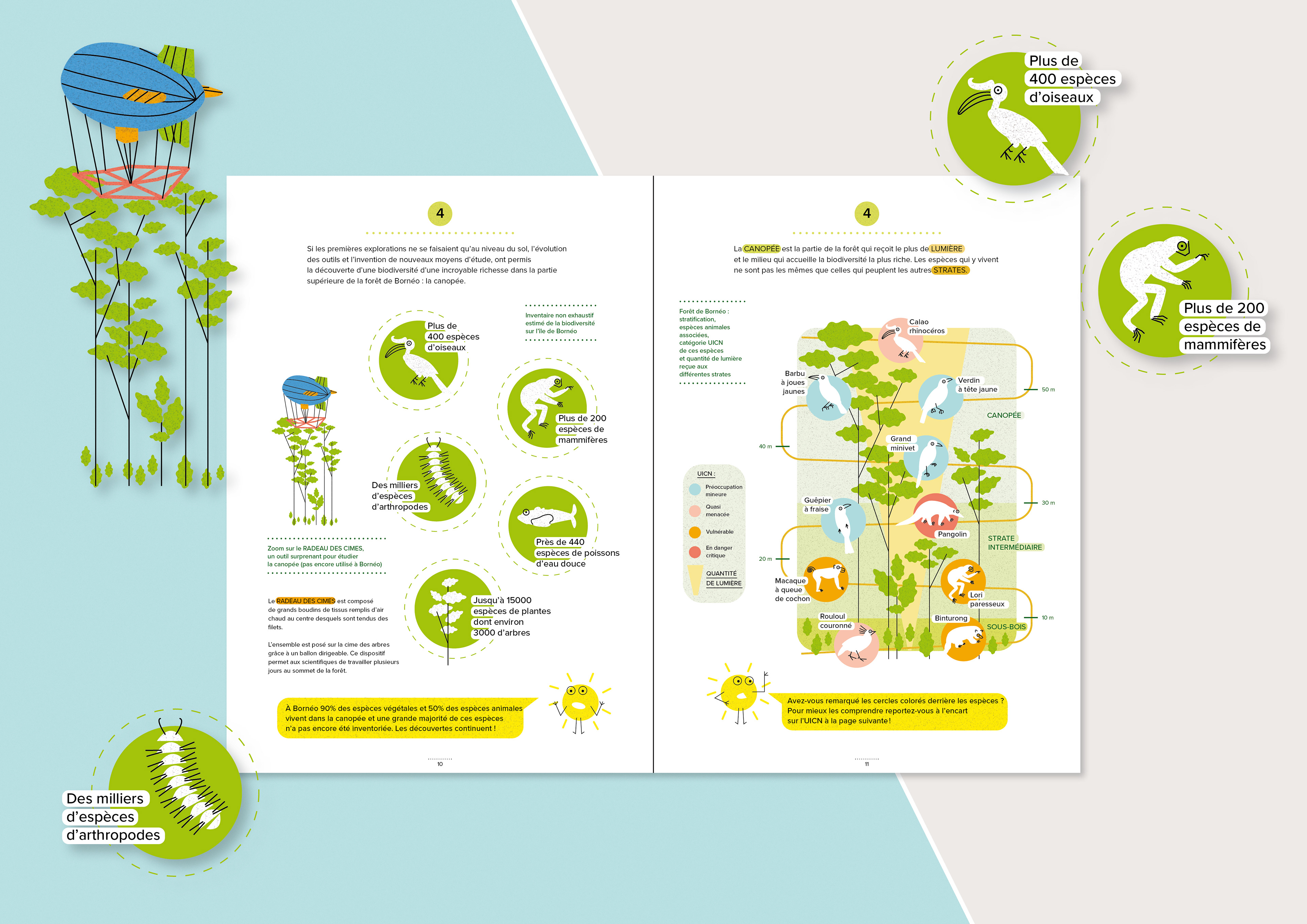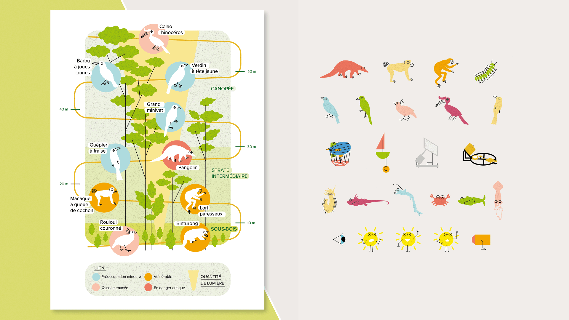 Visitor aid for schoolchildren and visitors to the "Light! Exploring the impossible" exhibition at Strasbourg's Musée Zoologique, in partnership with Strasbourg's Jardin des Sciences. With the help of educational illustrations, the booklet helps the public to understand the physical phenomena and biological riches linked to the nature of light and its effects, presented in the exhibition. A paper version is available for teachers and classes, and a hard copy is permanently available for visitors.