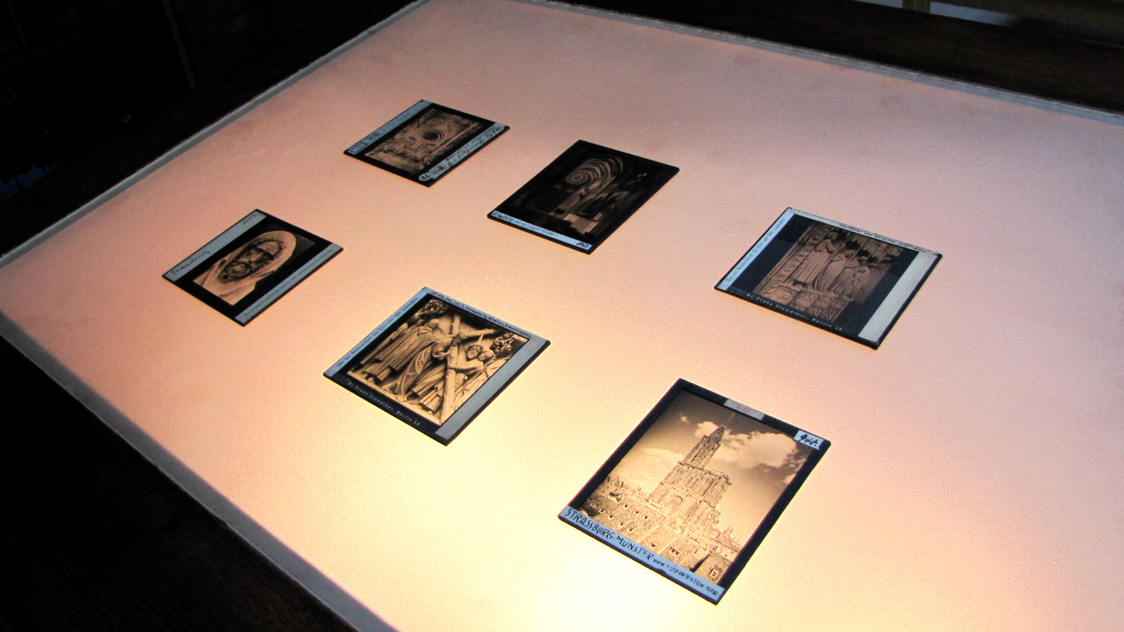 Exhibition "À côté de la plaque", which took place during the French National Museum Night, at the Art University Library in Strasbourg. This temporary installation showcases the Institut d'Histoire de l'Art's unique collection of light plates and antique works dating from the early 19th century. It is the fruit of research by a group of students and teacher-researchers. Teaching aids that have stood the test of time, brought to light again on this evening.