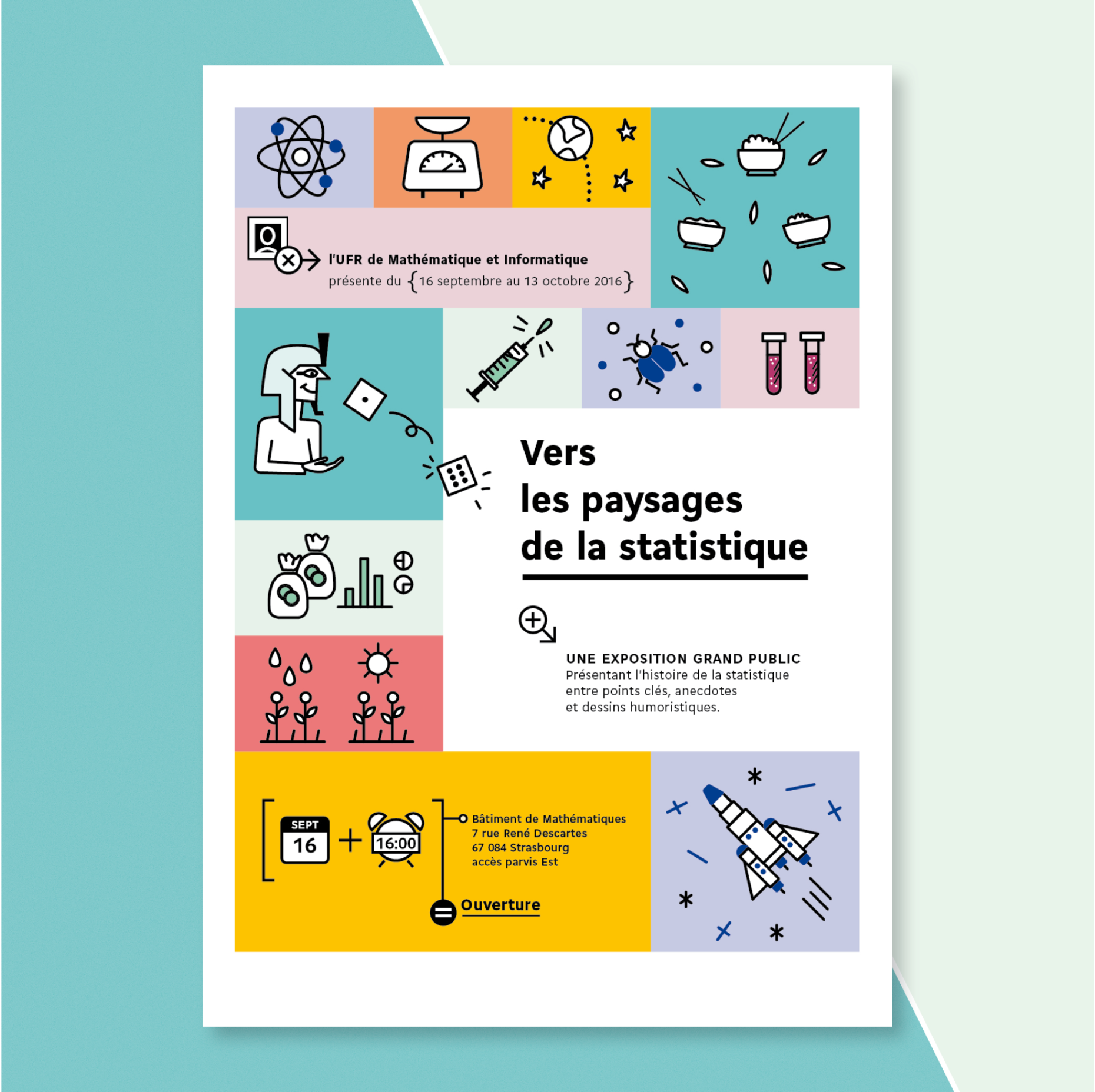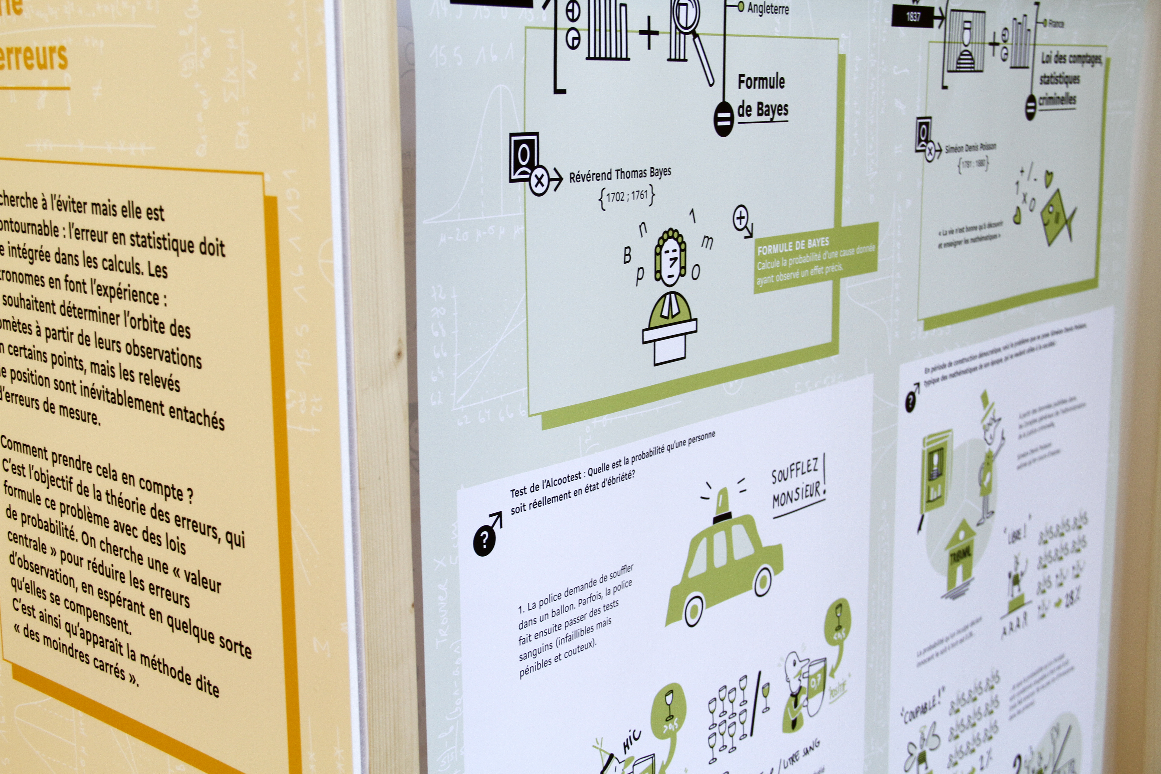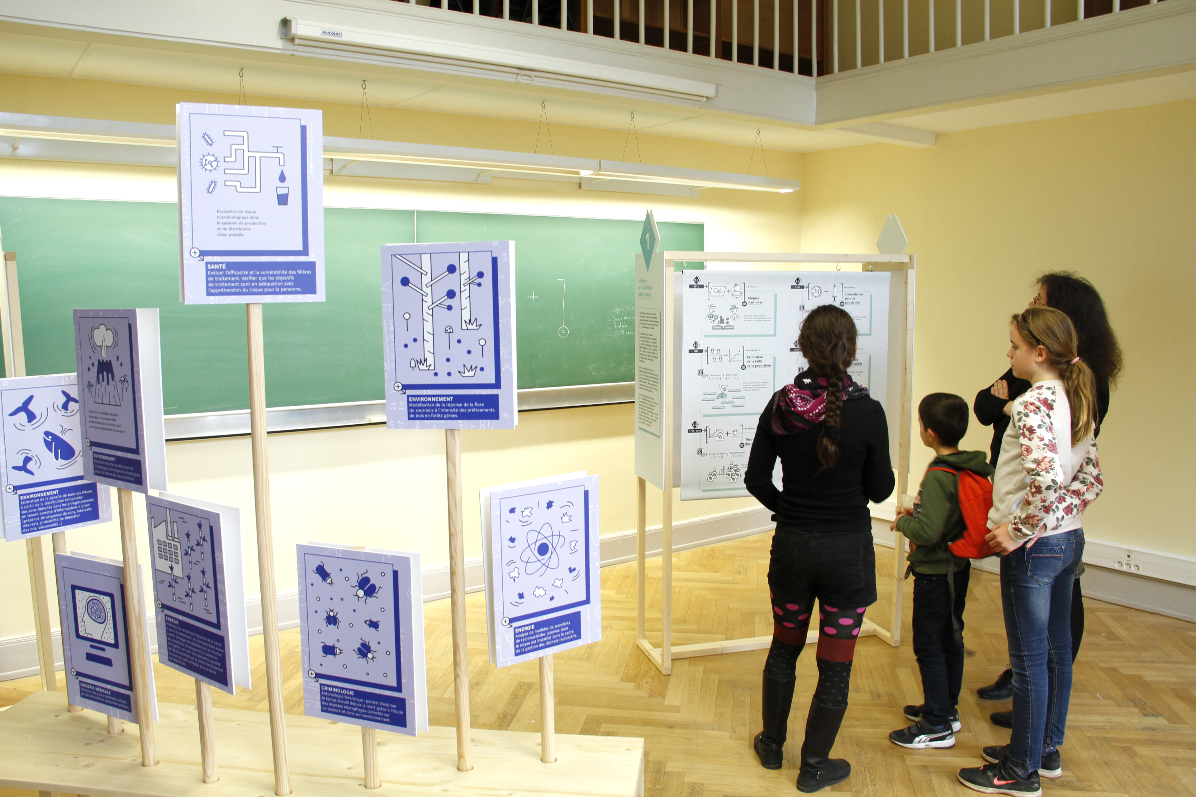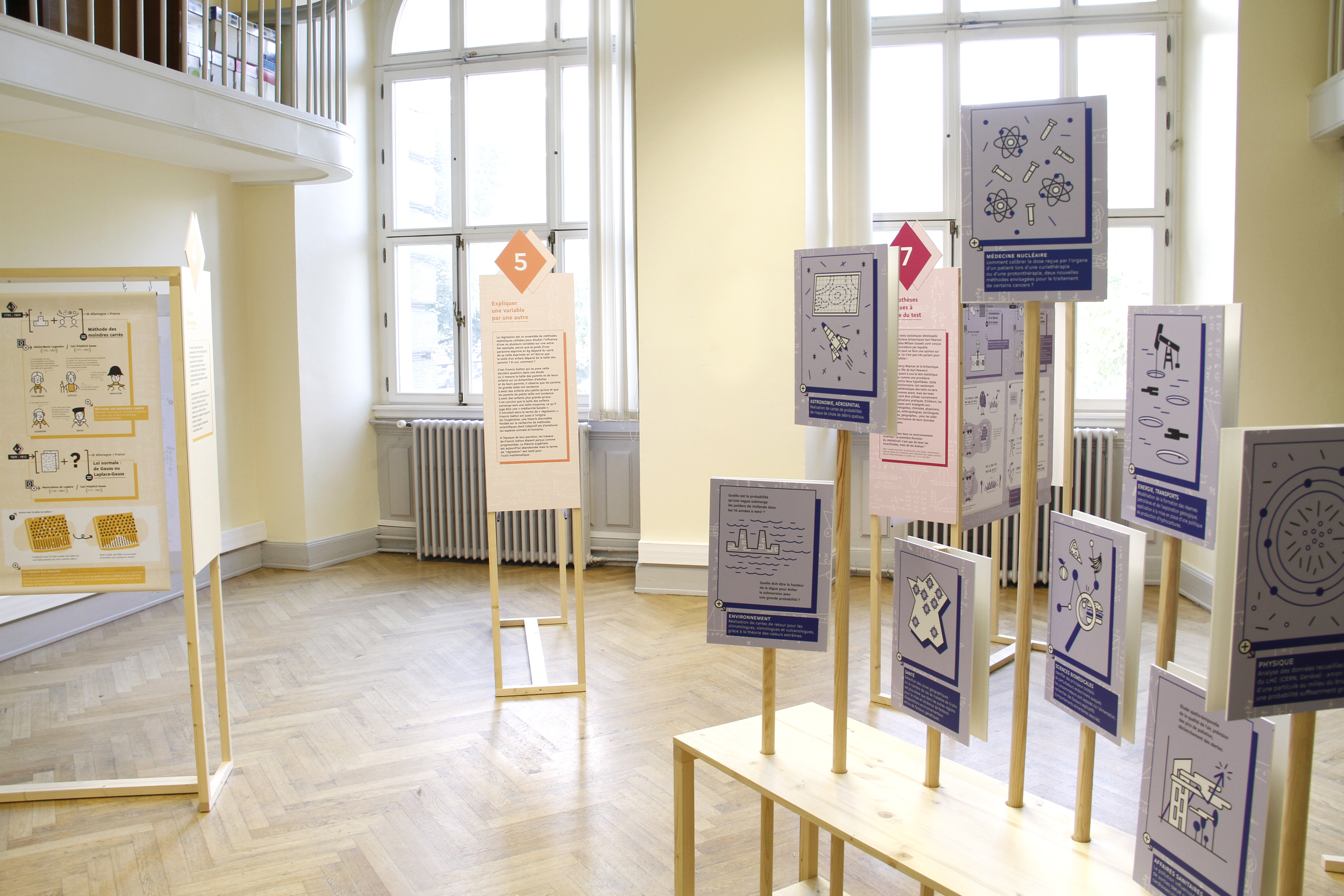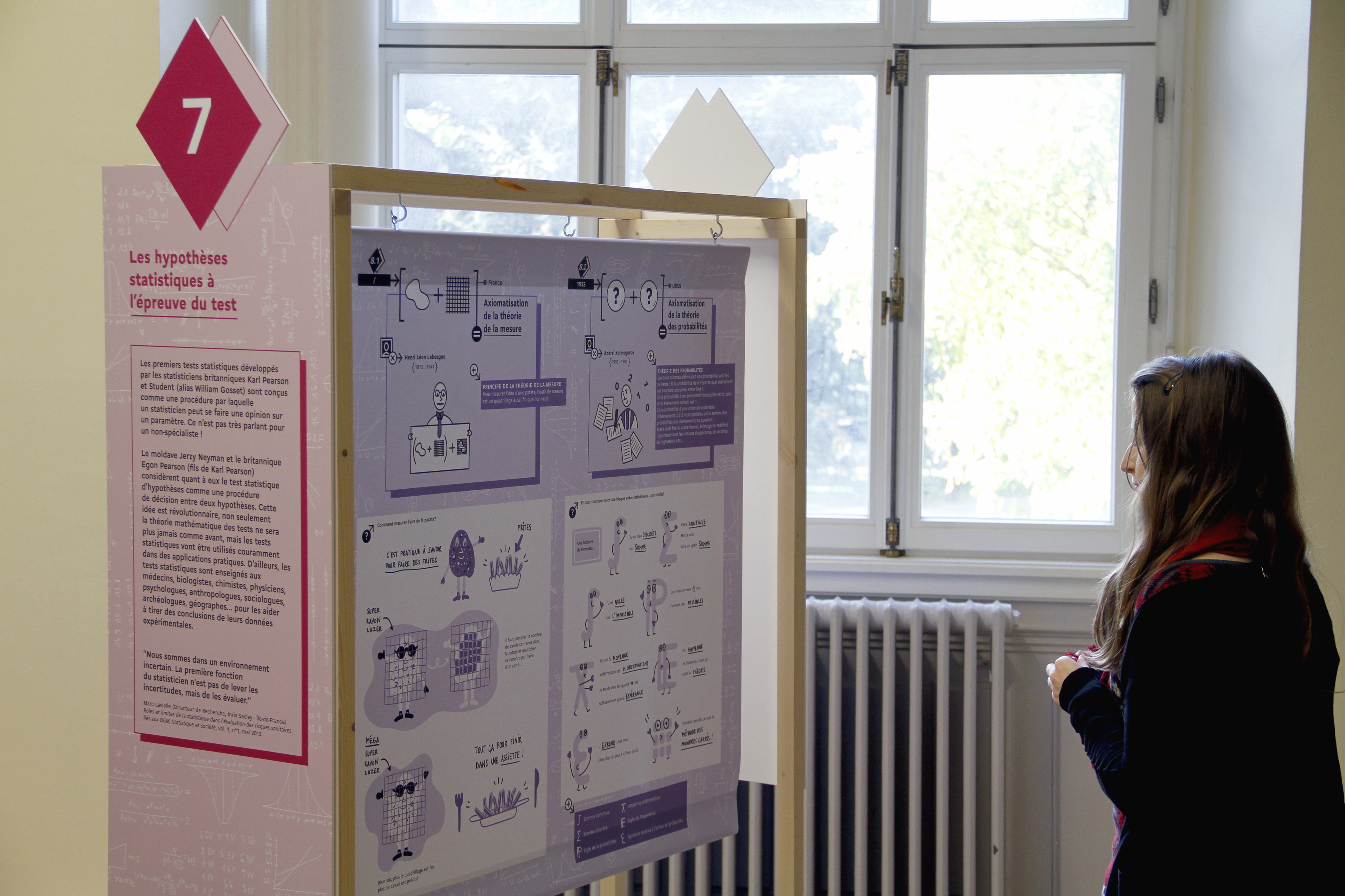 A travelling exhibition for the general public from age 7 to 77, created with Ségolen Geffray, Senior Lecturer in Statistics at the University of Strasbourg. The exhibition presents statistics and its history, stimulating visitors' curiosity through a playful, chronological trail of illustrations.