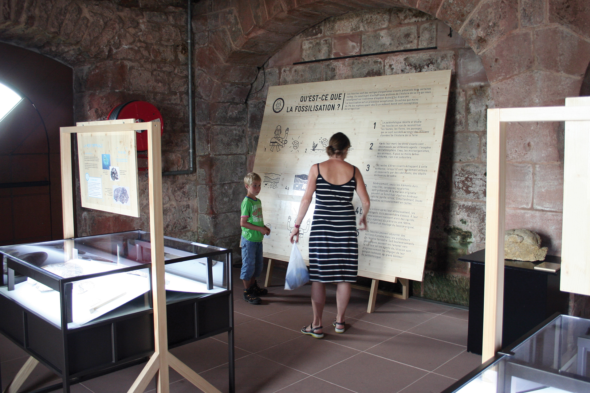 This permanent exhibition at Château du Lichtenberg introduces visitors to the riches of Alsace's subsoil and its geological history during the Triassic period. The graphics have been designed to create a playful, didactic trail that will appeal to visitors of all ages, including schoolchildren, with the help of “Professor Trias” as a point of reference. The showcases have been updated to create a fluid visit, with stamp and imprint games, as well as various wooden structures imagined with designer Raphaël Costes, echoing the Alsatian region and the contemporary part of the Château's architecture.